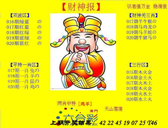020期: 澳门六合彩彩圖信封【黄财神报】每期自动更新